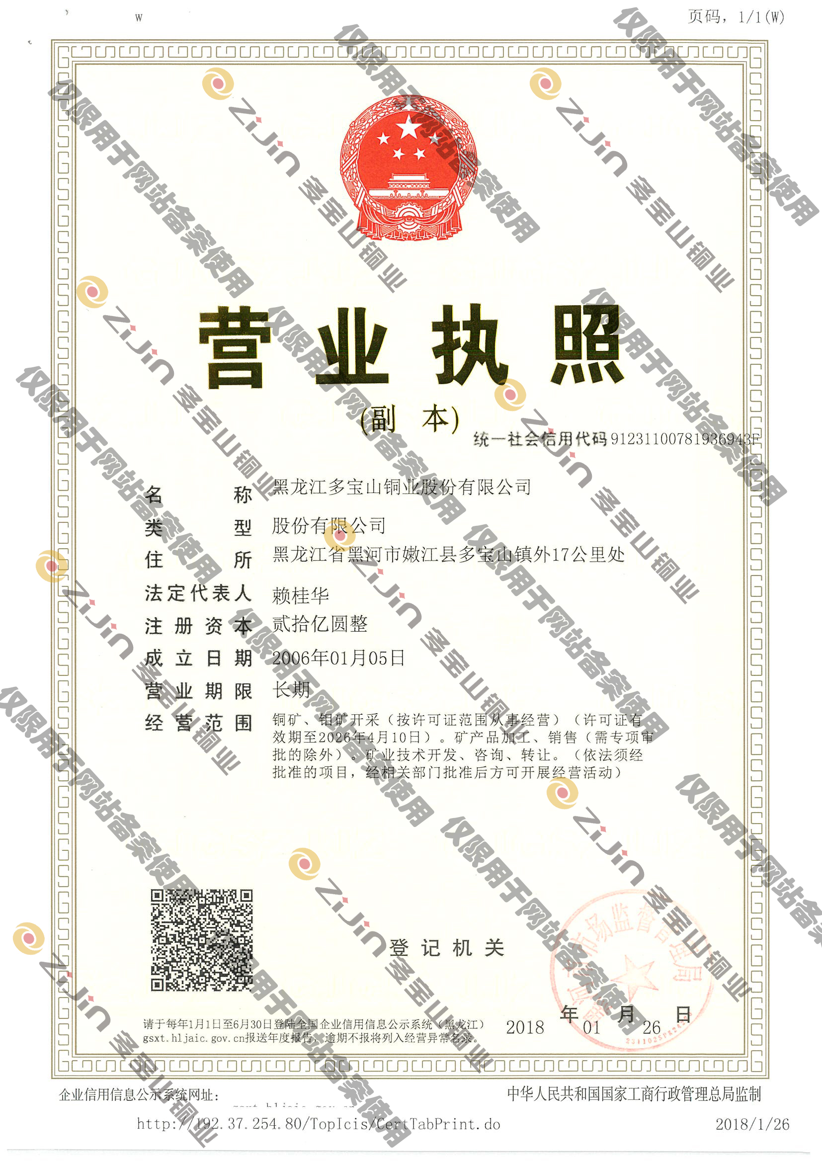 黑龍江多寶山銅業(yè)股份有限公司是紫金礦業(yè)集團股份有限公司的全資重點權(quán)屬企業(yè)。成立于2006年1月,注冊資本33.07億元,主導開發(fā)多寶山銅(鉬)礦、銅山礦,產(chǎn)品主要為銅金屬、鉬金屬及金、銀、錸等伴生貴金屬,日處理礦量規(guī)模達8萬噸。2023年產(chǎn)銅11.1萬噸,實現(xiàn)營業(yè)收入73.84億元,年末資產(chǎn)總額117億元。公司累計上繳稅收已突破80億元,不僅是黑河、嫩江兩級地方財政最主要的稅收來源之一,更是黑龍江省投資最多、生產(chǎn)能力最大的有色金屬礦山與低品位銅礦資源開發(fā)的典范,已然發(fā)展成為中...